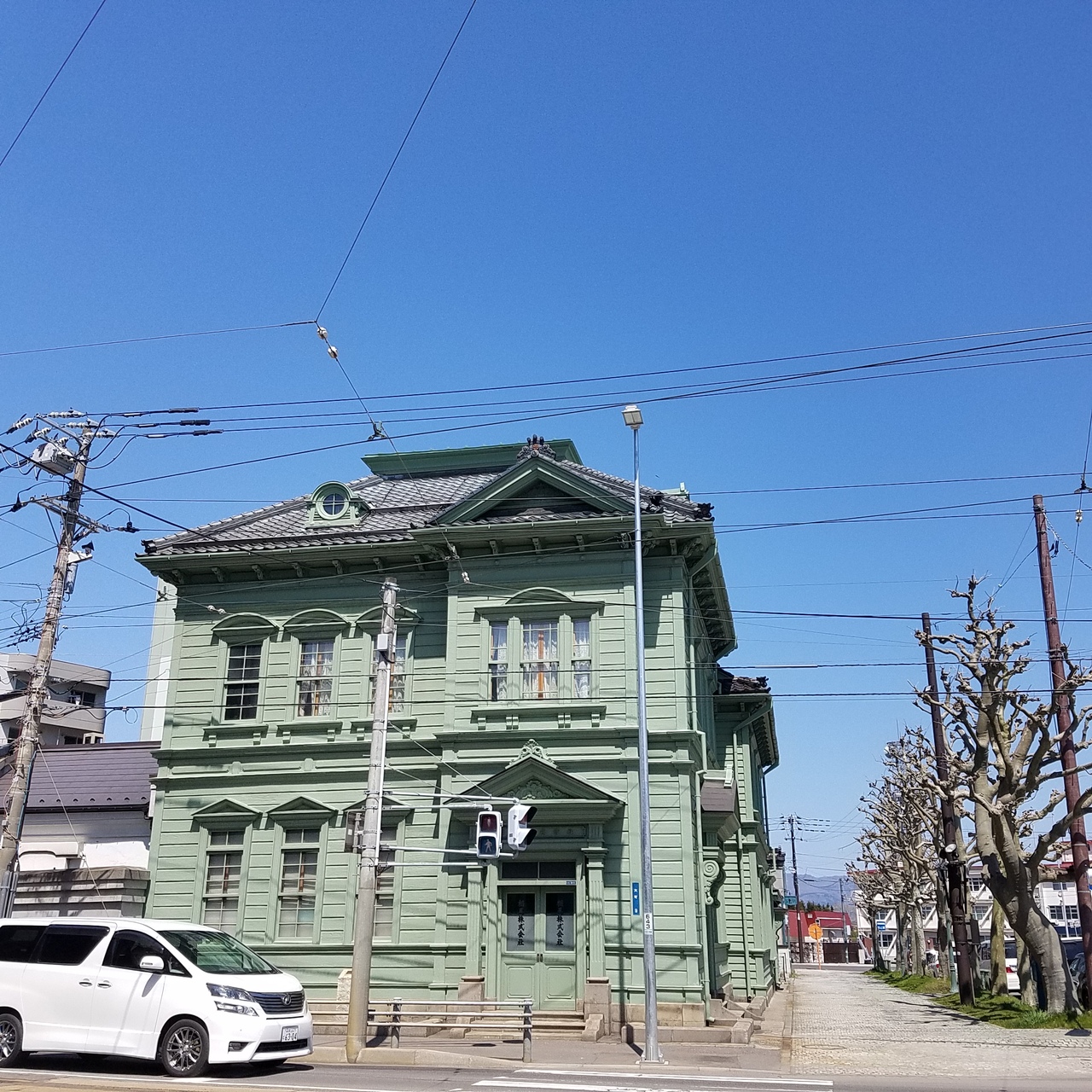 ペパーミントグリーンが綺麗な建物で、良い写真スポットです。
