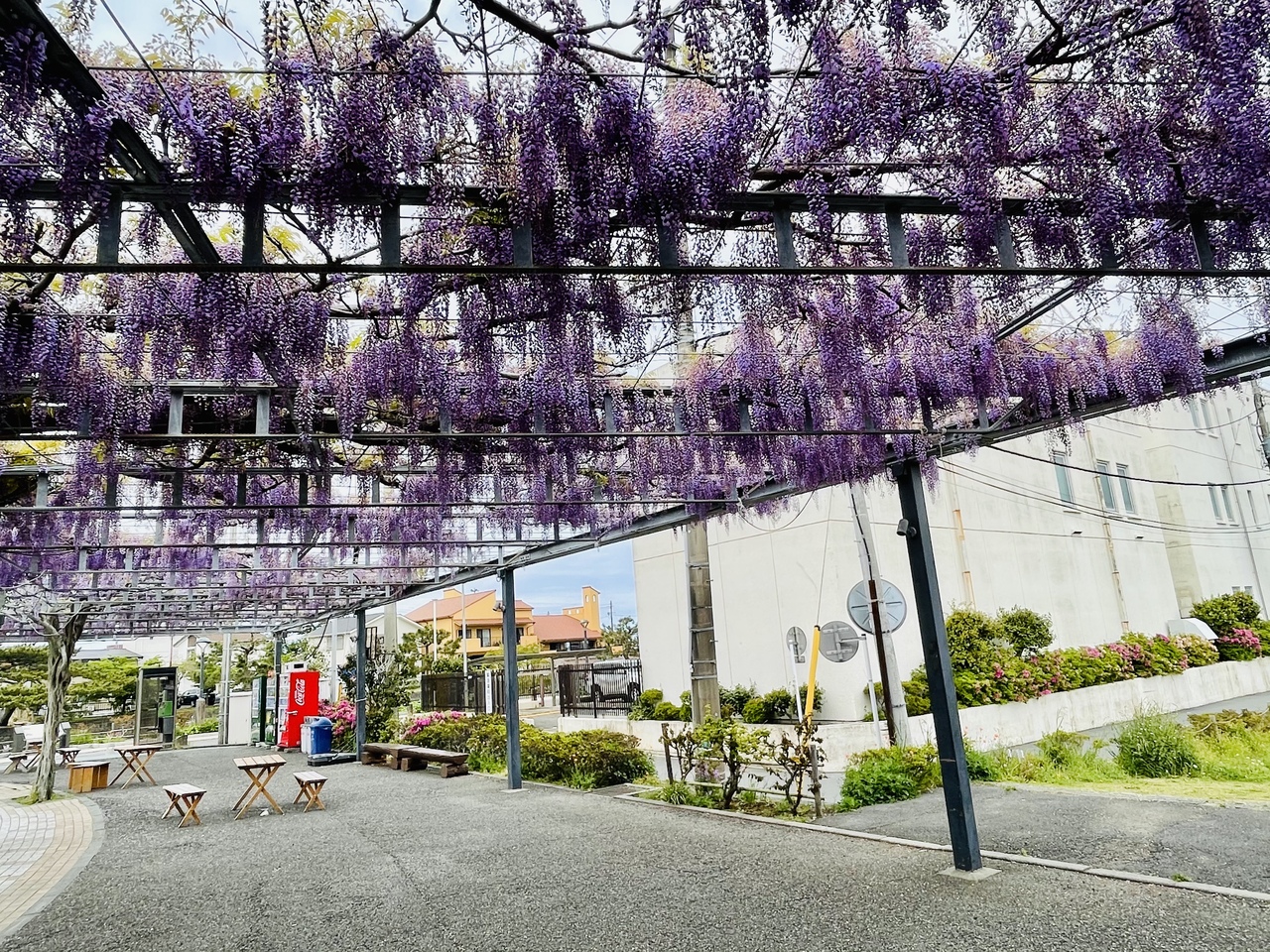 付近には旧市役所の跡地を利用した藤の広場があり藤棚がきれいだった。