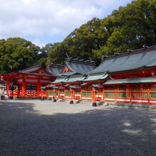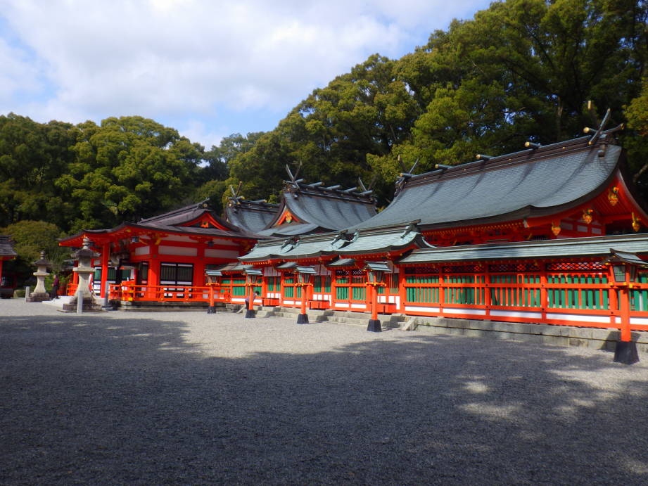 神門をくぐると「拝殿」があったので、まず拝殿を参拝しました。そのあと、正面の第一殿(結宮)、第二殿(速玉宮)、上三殿、八社殿と順番にお参りをしました。八社殿の隣には「新宮神社」やさざれ石、世界遺産の石碑もありました。授与所には「御神木の梛(ナギ)」の実で作られているなぎ人形が置いてありました。縁結び、家内安全のお守りなのだそうです。