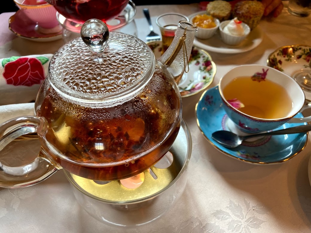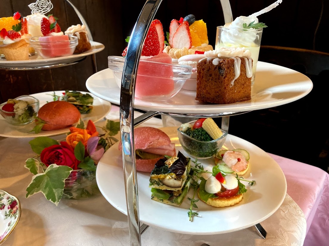 注文したアフタヌーンティーセットは、スイーツだけでなく、サラダ・スープも入っています。スイーツもいろんな種類が工夫されていて、どれも美味しそうなので、次は何を食べようか迷うのも楽しかったです。ティーポットもキャンドルウォーマーでゆっくりでも最後まで温かくいただくことができました。