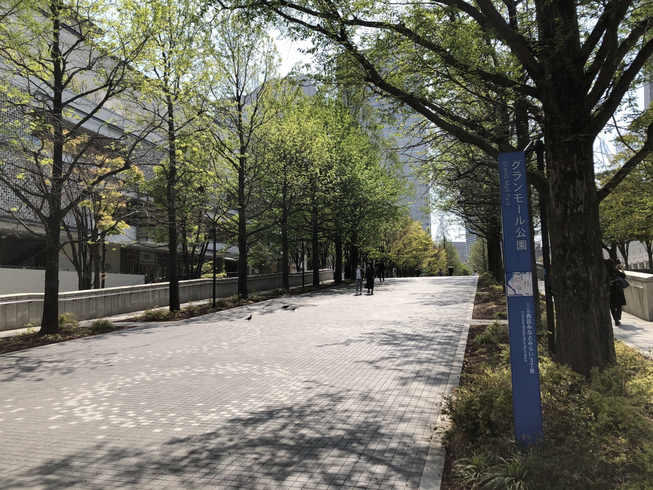 横浜博覧会(1989年に開催)のときに、パビリオンの一部としてできた広場がはじまりです。その後拡張され、現在は幅25m、長さ700mの帯状の公園になっており、公園の周囲には高層のオフィスビルや、ショップ、レストランなどが集まっています。