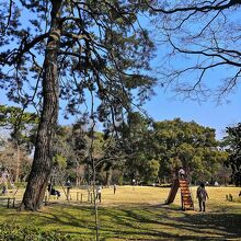 今回は乾御門から御苑に入ったので、比較的すぐにこちらが目に入ってきました。そこそこスペースはあり、週末とあって多くの家族連れがいました。地元の方が子供を遊ばせるにはいい場所かもしれませんが、観光客にはあまり意味ないと思います。