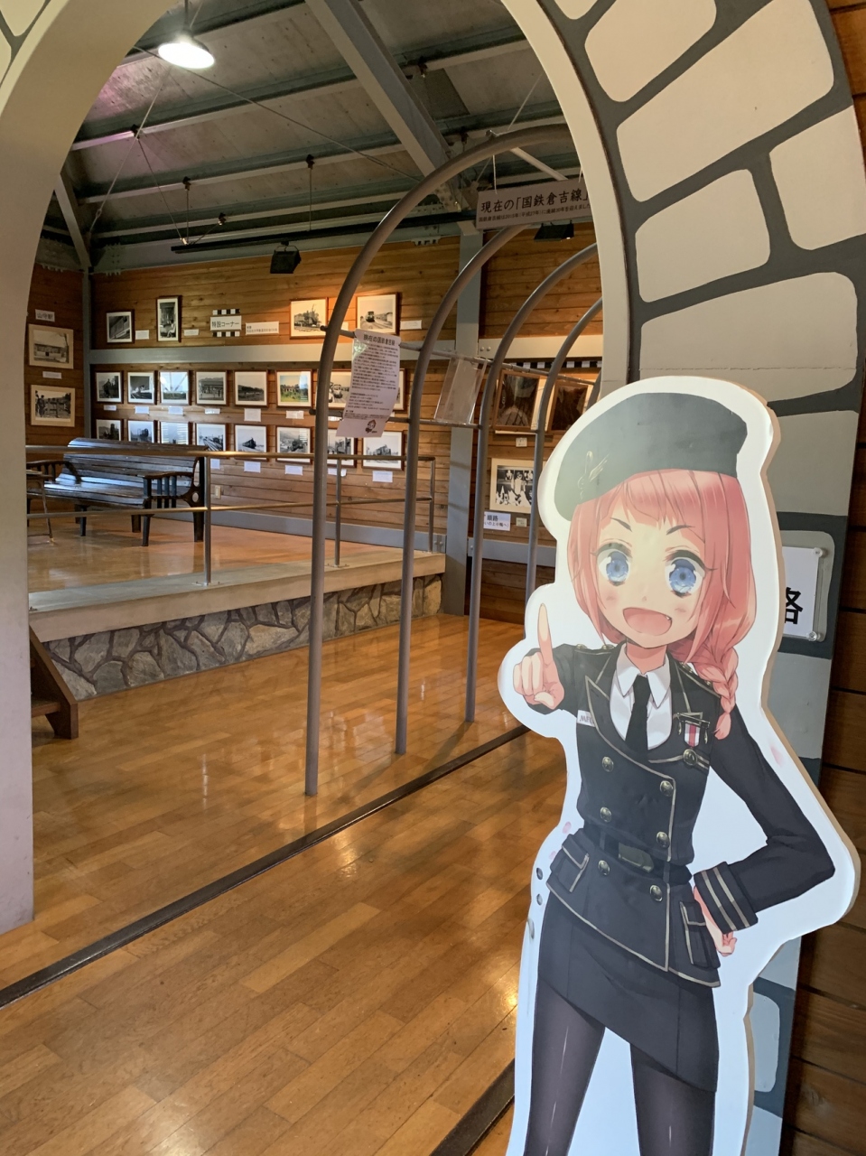 倉吉の蒸気機関車からすぐ近くにある記念館です。蒸気機関車についての資料をたくさん展示しているので、とても勉強になりました。倉吉に似ていると言われているアニメのひなびたのキャラクターの等身大パネルが飾ってありました。