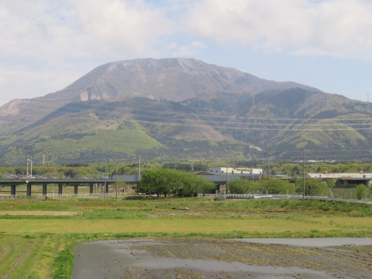 JR東海道線から眺める伊吹山は、いつもは雪をかぶっていて大きく、ドライブウェイの道路の筋が雪景色の美しさを妨げるものなのだが、今回は春の景色でした。