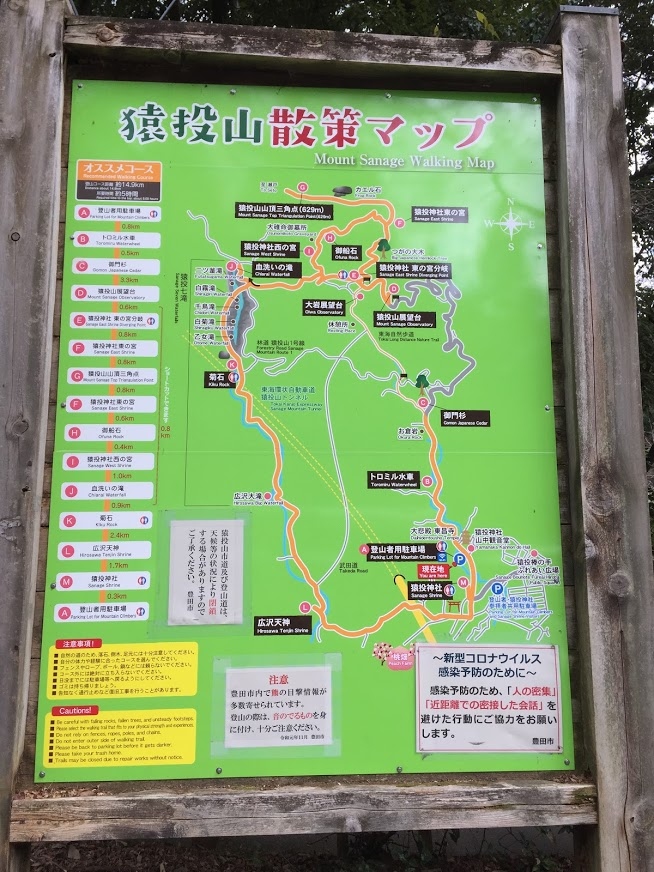 猿投神社の奥にある登山者用の駐車場から頂上を目指しました。駐車場は平日でもいっぱいでぎりぎり停めることができました。少し離れたところに砂利の第二駐車場もあります。