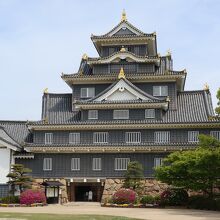 慶長2年に宇喜多秀家によって築城された岡山城の天守閣は他の城の天守とはちょっと違う構造をしているところが見所。下層は五角形なのに上層は四角形をしており、東西南北の見る角度によって姿、形が異なって見えます。残念ながら戦災で焼失し、現在の天守は再建されたものです。