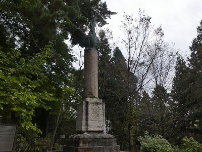 幕末の悲劇、白虎隊の墓などがある会津若松市の飯盛山にローマ市寄贈の碑という一風変わった碑が立っていました。円柱の先に青銅の鷲が羽を広げていました。1928年、当時のイタリアの首相ムッソリーニから「白虎隊とファシスト党は通じるものがある」と贈られました。どういう文脈はよく分からないけど、ムッソリーニは殿様に殉じた若者の姿が気に入ったんですねえ。もっとも、飾られていたファシスタ党章のマサカリは戦後、米軍によって持ち去られ、「武士道の精華に捧ぐ、ローマ元老院と市民より」という裏面の碑文は同じく米軍に削り取られてしまいます。連合国と枢軸国の争いに巻き込まれるなんて、白虎隊もあの世でびっくりしていたでしょうねえ。