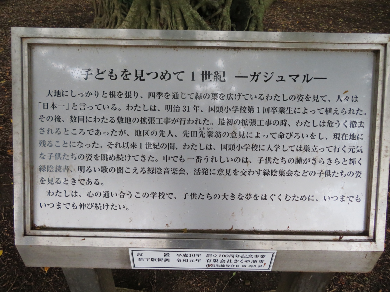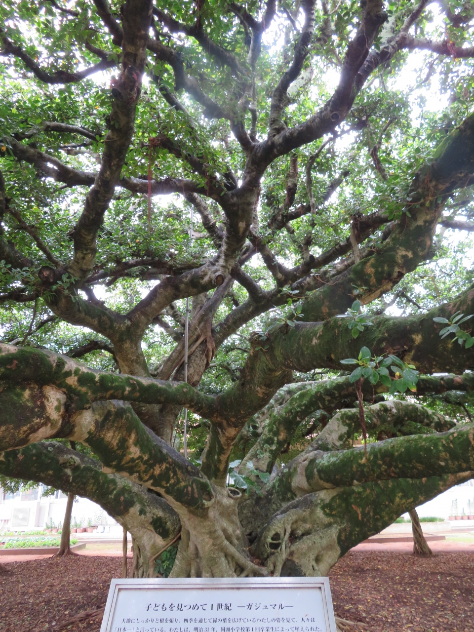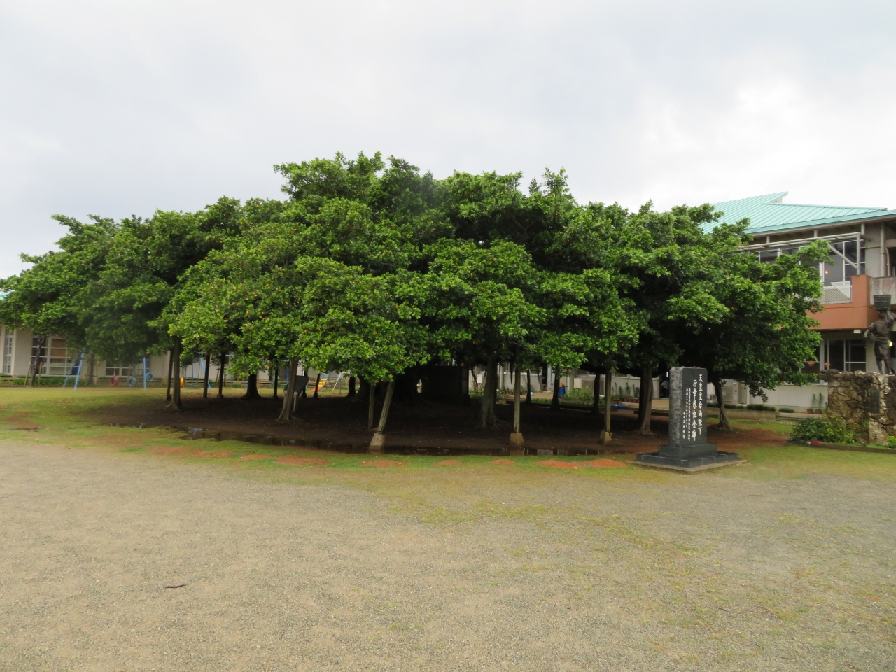 小学校の校門の先にこの木があります。校舎に近いです。開校している時間帯なら入って良いそうで、校庭には児童がいなかったのでお邪魔しました。立派な木で、ある場所も良いですね。子どもたちをいつまでも守って欲しいと思いました。パワーもらえそうな立派なガジュマルです。駐車スペースはないので、気を付けてください。