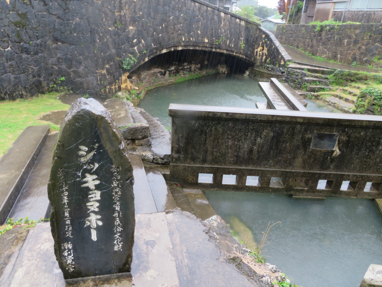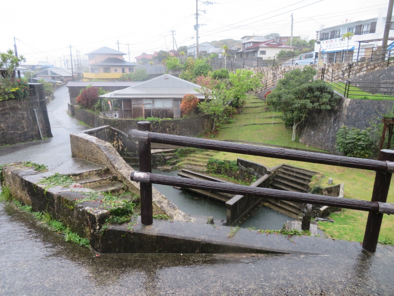 民家に囲まれた中にあります。水道が整備されるまで貴重な水源として利用されました。離島の水道整備は本当に遅かったですからね。大変だったろうと察します。駐車場、トイレも整備され、水源の周りも奇麗で、地元の方々で保たれているのがよく分かります。水源にはあちこちから来られるようになっており、トンネルもあります。地元の交流の場であったことが伺われます。今も良い広場ではないでしょうか。