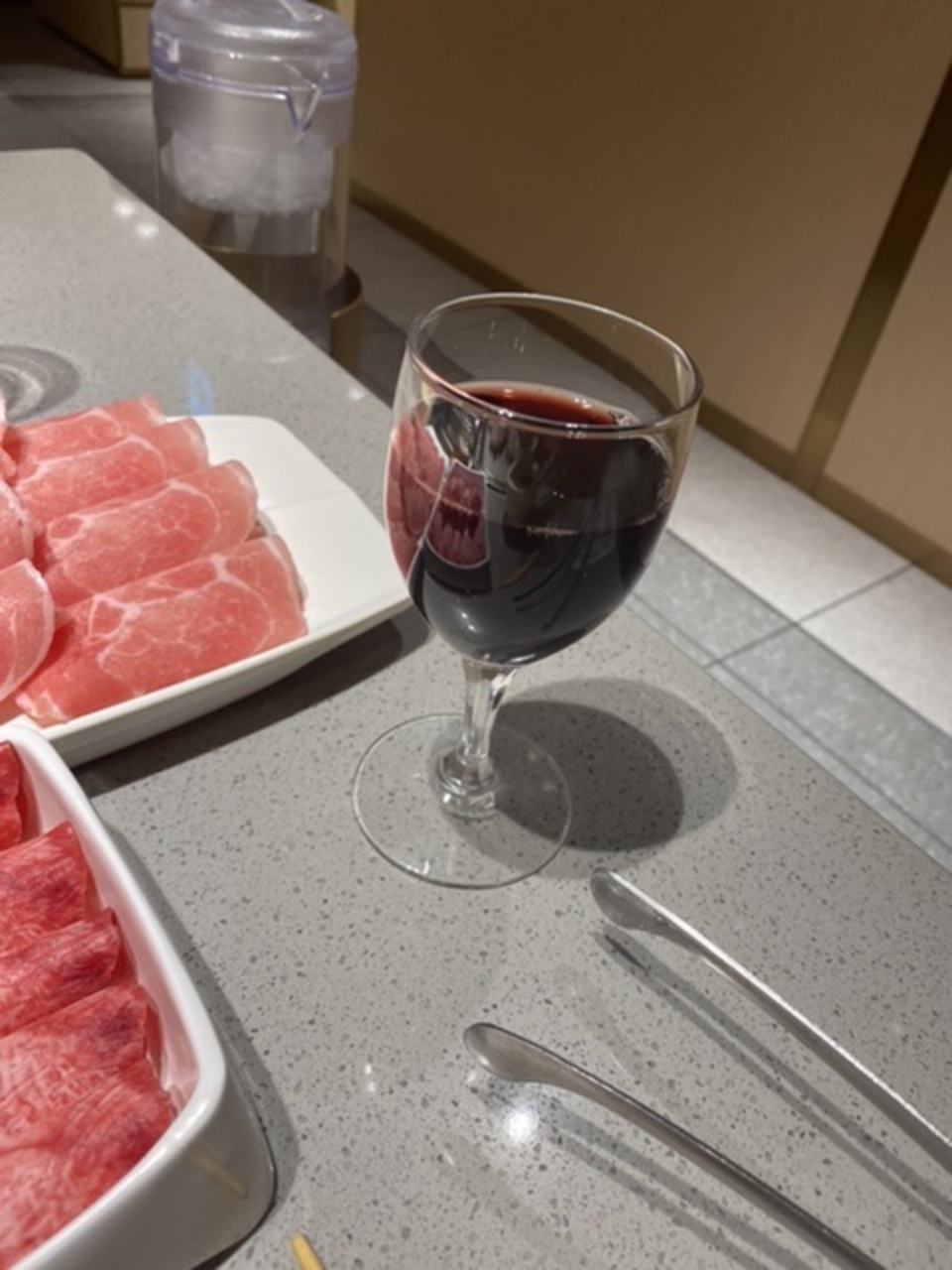 ラム肉のランチセットに豚肩ロースと牛タンを追加し、ドリンクは飲み放題に!生ビール、紹興酒、赤ワインと。ナイスです!
