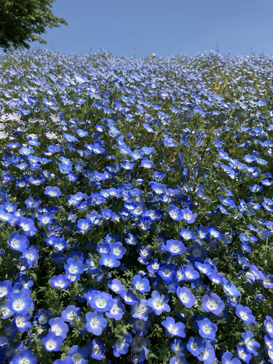 ネモフィラの花畑が見たくてやってきました。花畑はちょうど見頃で、どの花も生き生きと鮮やかな色でとても癒されました。家族連れで、芝生でボール遊びなどをしている人たちもたくさんいて、とても賑わっていました。コロナ禍でも思いっきり楽しめる場所です。
