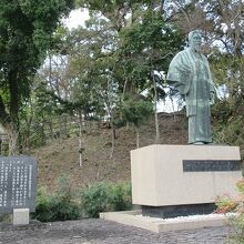 陸奥宗光伯銅像は和歌山城の南側にある岡公園の駐車場横に建っています。