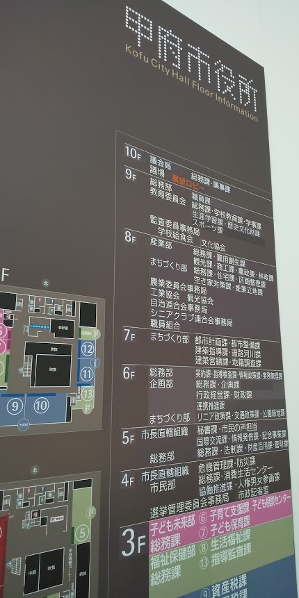 で高いビルの甲府市役所があります。