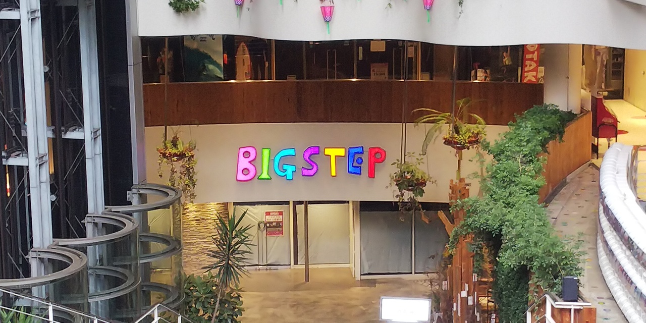 ビッグステップは吹抜けが贅沢な造りのアメリカ村にあるビルです。服飾雑貨のお店を中心に映画館やライブハウスなどが入っています。最寄りの駅は大阪メトロ御堂筋線の心斎橋駅で、歩いたら5分ぐらいだと思います。
