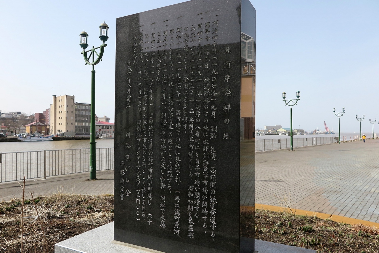 「釧路フィッシャーマンズワーフ」、そのEGG正面に「魚河岸発祥の地」と刻まれた碑がありました。碑の裏側には釧路における魚市場の変遷が記されていましたが、その歴史は明治40年の水卸魚菜市場がこちらに開かれたことに始まるようでした。ただ魚河岸と呼ばれる魚市場は遥か古代から存在していますから、ここで言うところの発祥は”釧路”におけるという意味のはず。釧路の河岸の人が、この地を誇りにしているということから、こうした文字が刻まれたのでしょうね。