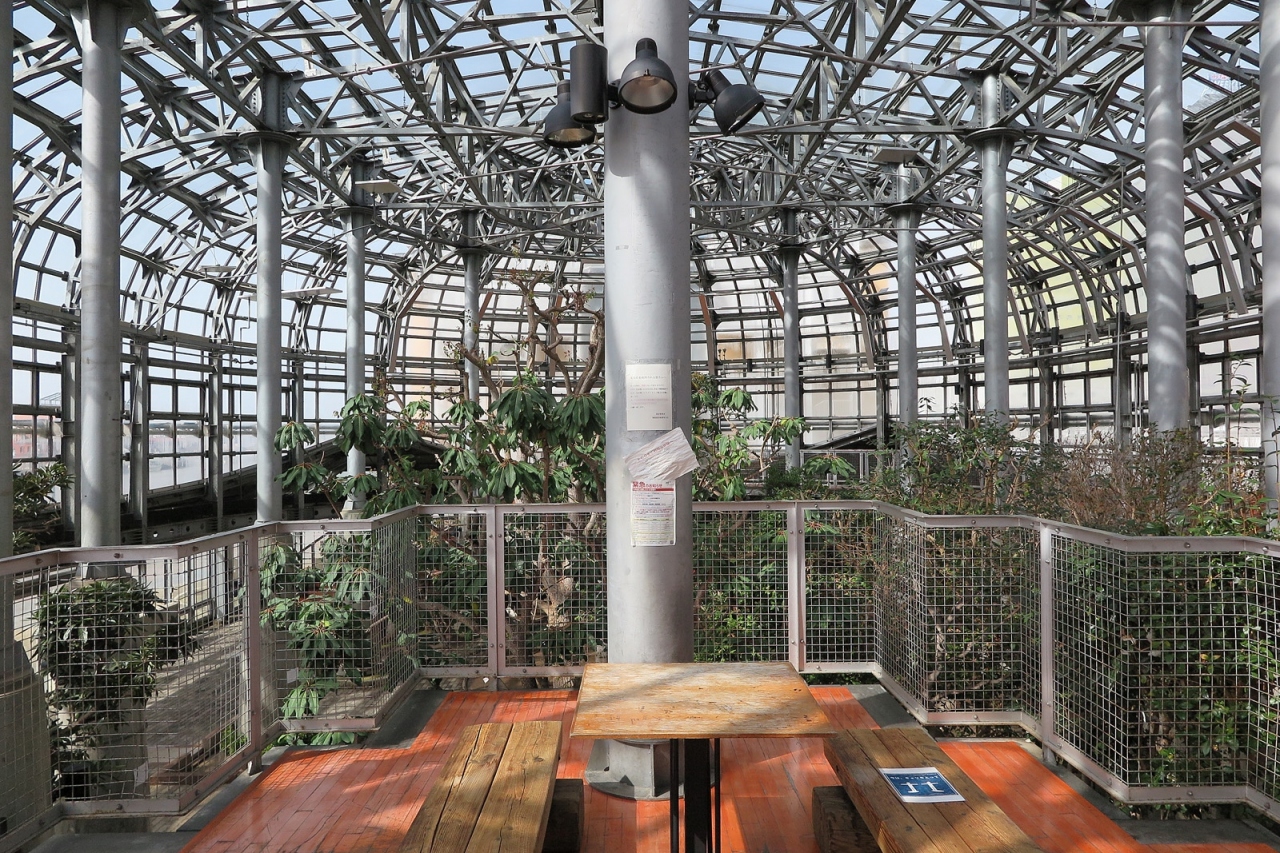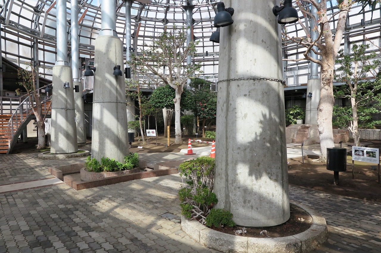- ガラス張りの館内には緑の植物、ただ、閑散とした雰囲気が否めないかな