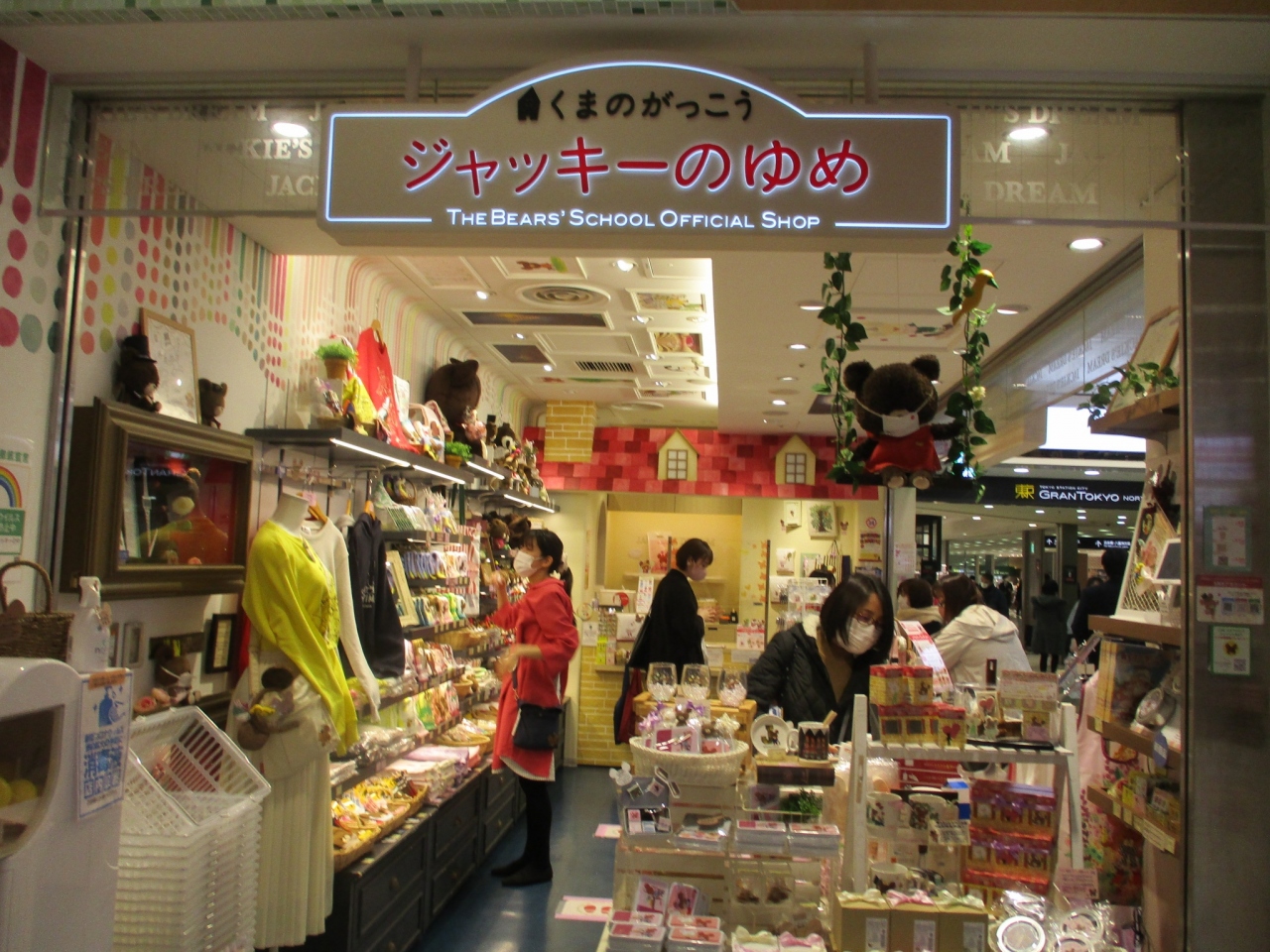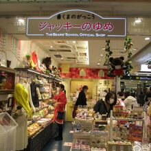 東京駅直結の地下にある東京キャラクターストリートにお店があります。絵本の大人気シリーズ「くまのがっこう」のオフィシャルショップです。駅長姿のジャッキーのぬいぐるみなど限定品をはじめ雑貨がたくさんあります。