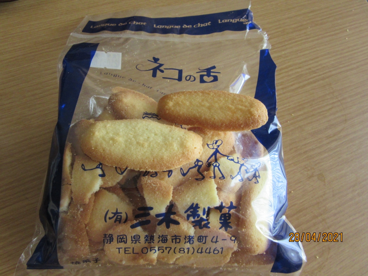 店には学生風の若い女性の販売スタッフが大勢いて裏はオープンキッチンならぬ製造現場で窓越しに見ることができた。女性スタッフに【アド街を見て来た】と言ったら喜んでいた。1949年開業の古い店。地元民に選ばれた一番人気の【ネコの舌=写真添付】を購入(1袋=600円)して食べたが、一枚がとても小さくサクサクして何枚でも食べられる焼き菓子であった。(癖になる味で止まらない)女性スタッフの説明では、バターと卵をたっぷり使った菓子との事であった。若い女性スタッフの接客がとても明るく爽やかで気持ちの良い買い物だった。ただ持ち運びに注意しないと柔らかい生地なのですぐ崩れてしまう。(実際3分の一くらい崩れていた。)