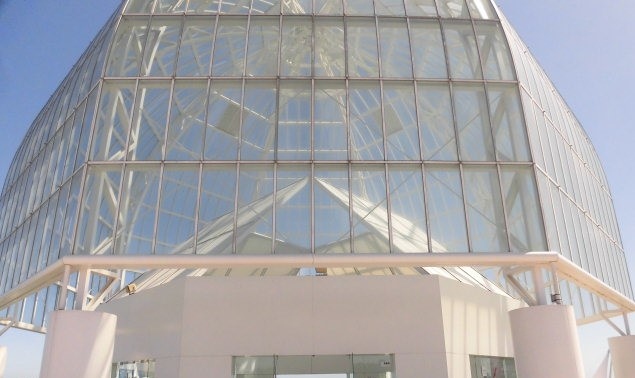 ガラス張りのドーム型入口&マグロの大群が印象的