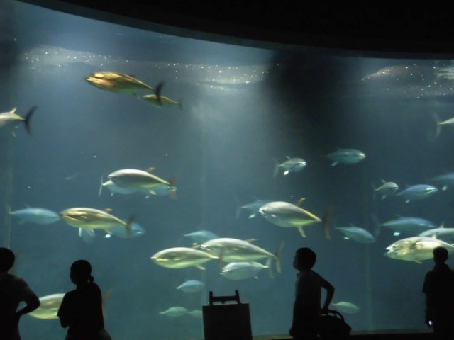 水族館は、階段を昇った高い場所にあり、遠くからも良く見えるガラス張りのドーム型の建物が入口でした。その場所からは海も見え、吹きさらしなのでとても風が強かったです。水族館はさほど広くはないですが、マグロがたくさん泳いでいる水槽や、ペンギンが集まっている場所、海鳥の生態を観察できる場所などがあり、楽しめました。レストランもありましたし、ほどよい水族館だと思います。