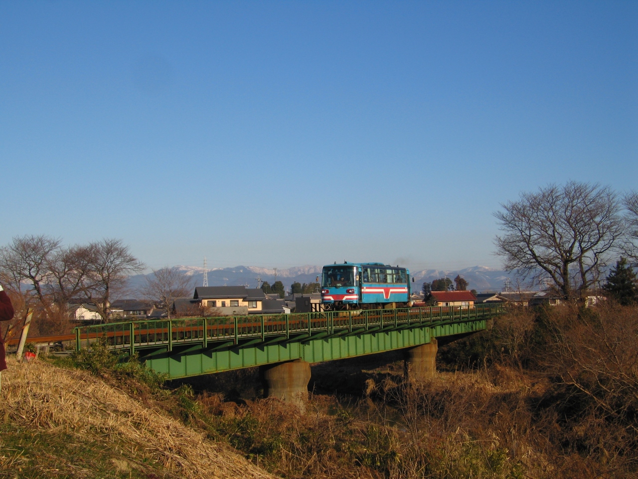 バスのようなデイーゼルカーが1両でゆったり走っています。