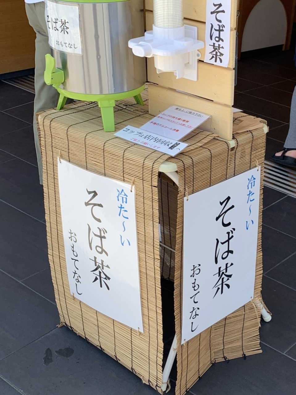 出雲大社にきたついでに近いこちらのお店に立ち寄りました。おふくやきをテイクアウト。店頭では冷たいそば茶のサービスがあり、自由に好きに飲むことができました。まだまだ暑い日だったのでありがたいサービスでした。
