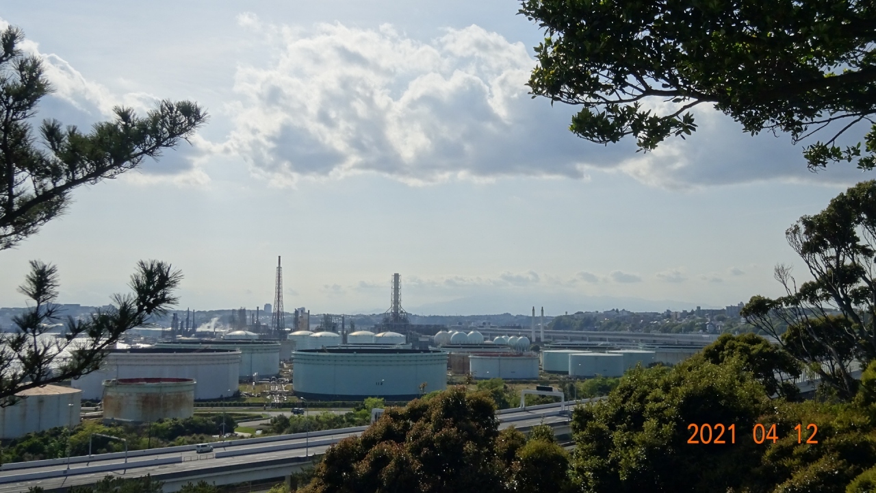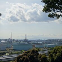JR根岸駅から首都高速湾岸線を超えると、首都高速に沿って広い敷地の製油所です。