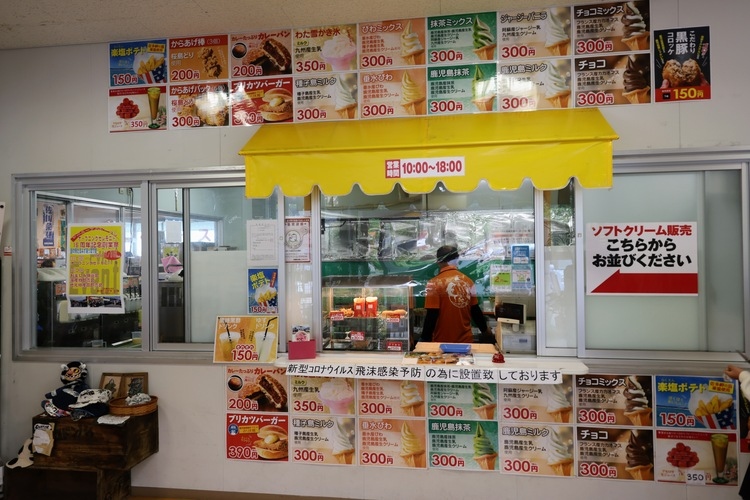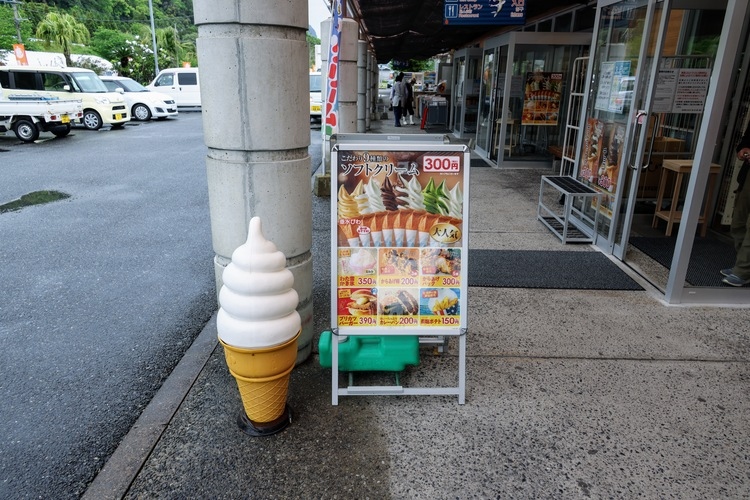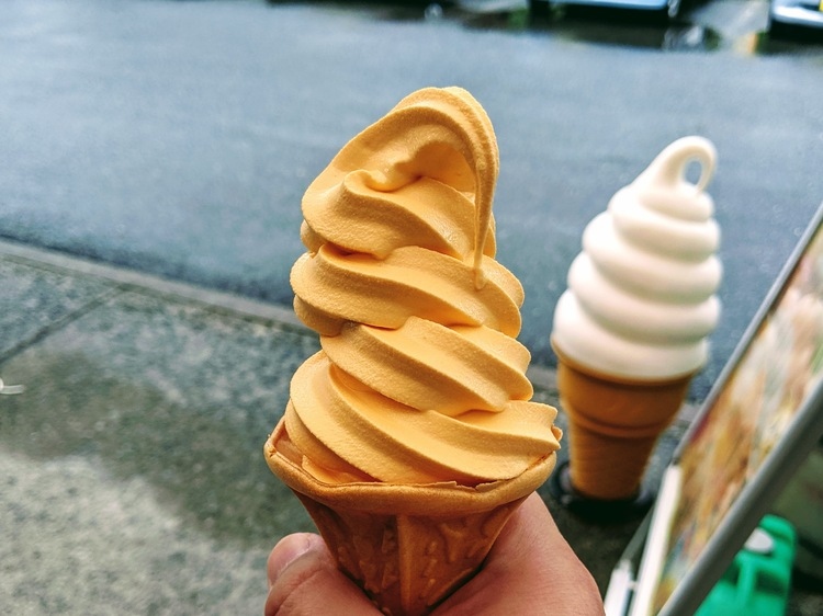 鹿児島空港から車で1時間、大隅半島の玄関口「たるみず」にある「道の駅たるみず」、もちろんソフトクリームを調査です。外の看板から、大量の種類が・・・バニラ(ミルク)だけで三種類! これは期待が持てます。更にオリジナルがあり・・・「びわソフトクリーム」、間違いなさそうです。コーンで注文。価格は300円と良心的。渡されたソフトはビワ色、そしてほのかにビワの甘い香りが。口あたりはなめらかですね。お味はミルク感が強いソフトクリームにほのかにビワの香りと甘さが。完璧ですね。甘すぎず絶品です。一気にびわソフトを食べましたが・・・3種類のバニラが気になり・・・ましたがこの時は我慢して出発しました。