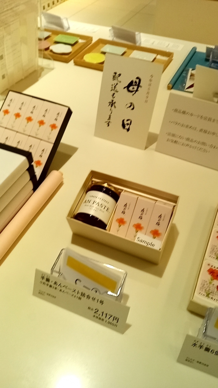母の日も近づき、母の日限定の商品も販売されていました。カーネーションが描かれたパッケージの羊羹やとらやのオリジナルバックに入った商品も販売されていました。