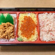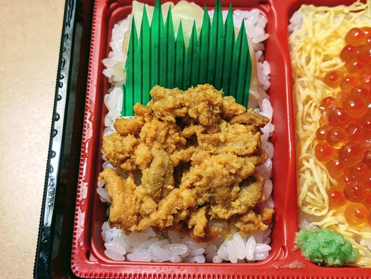 北海道・新千歳空港。国内線ターミナルビル2F、JALカウンター近くにある「実演空弁 北の味覚 すず花」。私の新千歳到着はいつも夜。この日も19時に到着してレンタカーの送迎をお願いする前に行きますと・・・ はい、閉店間際のセール中。写真の「花セット」はうに(残念ながら蒸しウニですが・・・)にイクラにカニのほぐし身の3色弁当が1,180円の50%OFFで590円でした。空港内に寿司屋も運営している「すず花」ですので味はバッチリです。時間帯(閉店間際)と在庫(売り切れていることの方が多いです・・・)によりますので運が良ければお得に購入出来ますので、タイミングが合えばお店をのぞいてみてください~