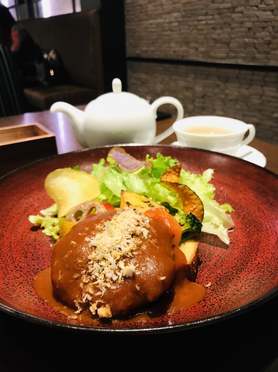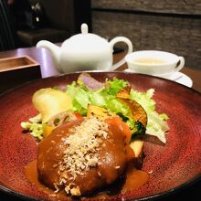 オープンスタイルのハンバーガーは、付け合わせのロースト野菜もとても美味しくてお気に入りの一品です。