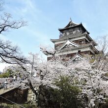 広島には何度も訪れていますが、広島城には初めて訪れました。敷地は広いですが、お城は隅っこにあるので、お堀の辺りを歩いていても見えません。有名な舟にも乗りたかったのですが、コロナの影響か、土曜日でも運行されていませんでした。