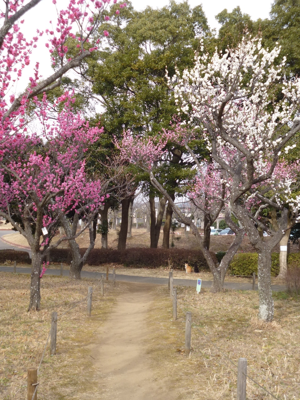京成千葉寺駅から10分ほどのところに、青葉の森公園があります。公園内には県立中央博物館や野球場や陸上競技場などもある広い公園です。中央博物館のすぐ近くに梅園があります。ちょうど見頃でピンクや白の梅が見事に咲いていました。