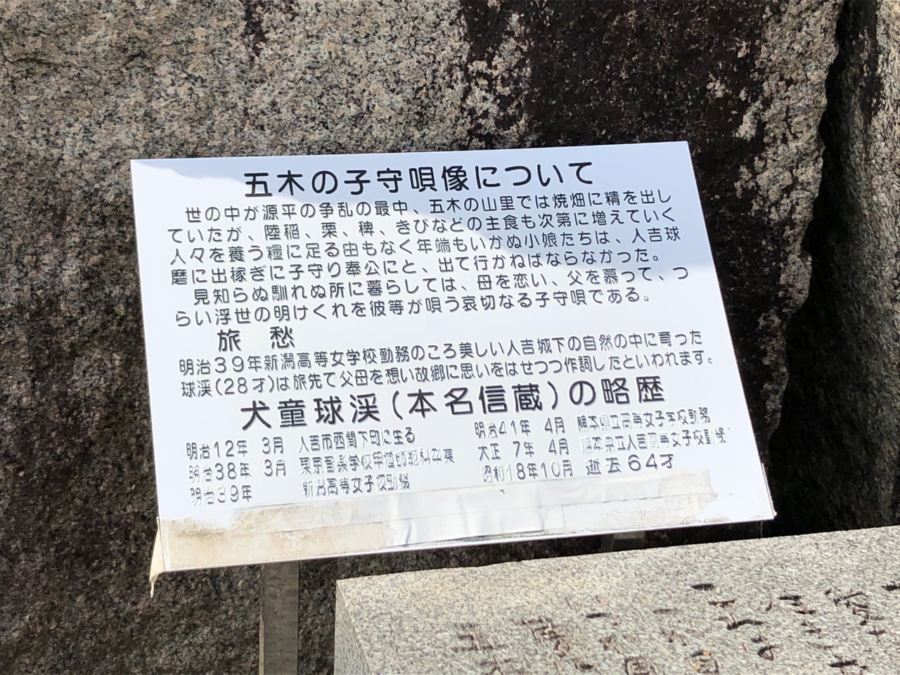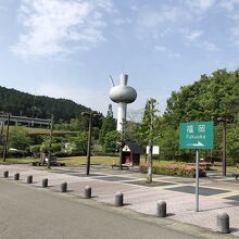 このサービスエリアで一際目を惹くのが大きな急須のモニュメント。山江はお茶の生産地として有名な場所なので急須かと思いきや、球磨焼酎を飲む際に使う伝統的な酒器(とっくりのようなもの)「ガラ」を模したものとのこと。ちなみにこれは単なるモニュメントではなく、高架水槽とのこと。また、熊本県球磨群に伝わる「五木の子守唄」をイメージした石のモニュメントもあり、小さなサービスエリアながらも見所が多い。