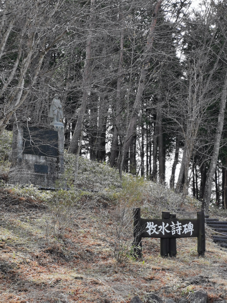 群馬・長野のロングドライブで四万温泉から野反湖に向かう道中。県道55号線を通過中。暮坂峠を通りました。標高1088m。以外と広い駐車場があります。ちょっとしたお店もありますが閉店していました(時間外?)。こんな山の中ですが、牧水の詩碑と像があります。人気もなかったので早々と移動開始しました。