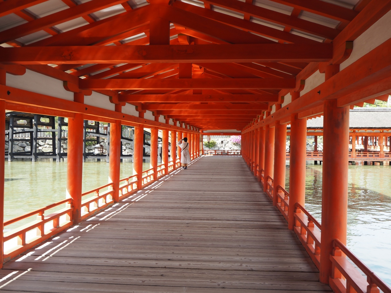 宮島は古来神の島として信仰の場であったということで、ここに平安時代に平清盛が厳島神社を建立しています。その後は時代とともに五重塔、豊国神社、大願寺、大聖院などの各神社、各仏閣が建てられています。そのため街並みも歴史を感じ、時代をタイムスリップした感じがあります。不思議と宮島にはコンビニが一軒もないようです。