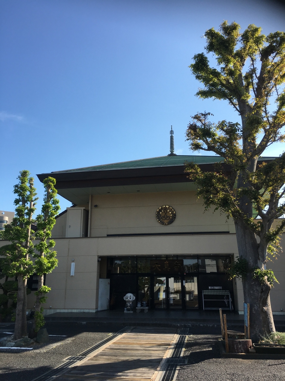 大きな総合病院の前にあるお寺で、境内入るとコンクリートの駐車場で後方に四角い本殿があり、小僧のマスコットが可愛いらしかったです。左側には芝生があり、木々が立っていて、公園のようにも見えました。庭が綺麗な寺でした。