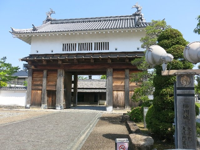 当時の位置からは50mほど北とのこと。2階建ての立派な門構えで、天守閣も見ることが出来て良い感じです。