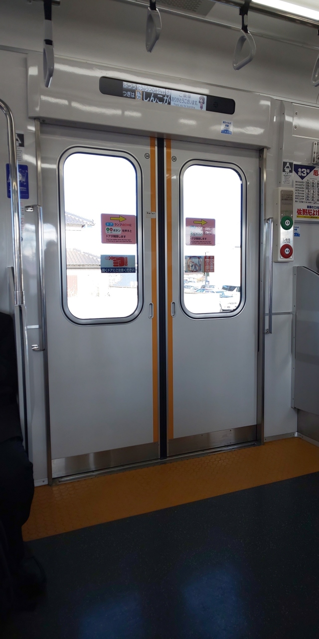 乗り降りのときにはボタンをおしてドアを開閉することとなっています。都内に住んでるとドアは勝手に開くものばかりですので。