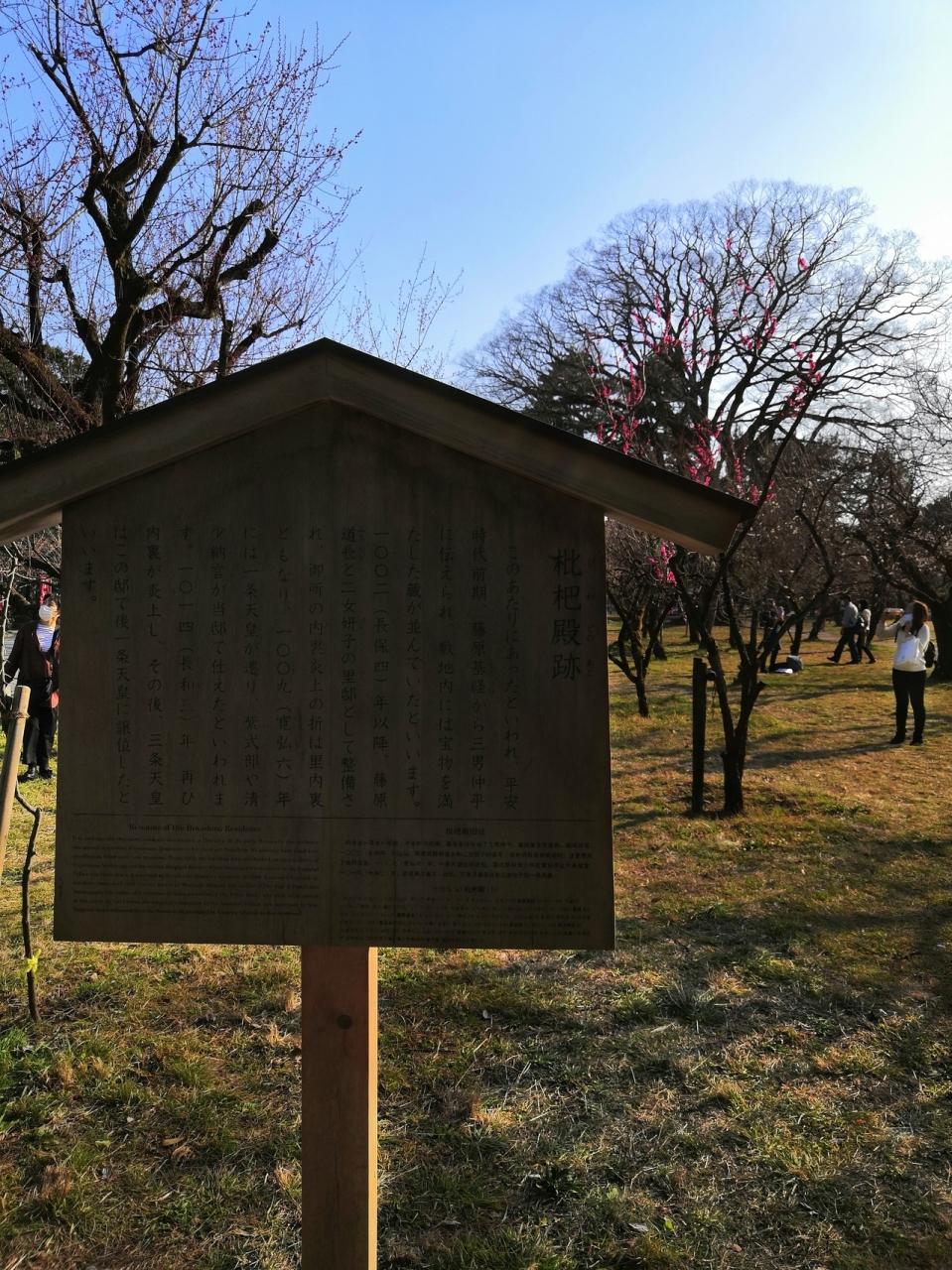 京都御所の南西側の梅が植えられているエリアにあります。平安時代中期の公卿・藤原仲平の屋敷跡で、今とは違って邸内に枇杷が植えられていたことが名の由来らしいです。他の植物が多いエリアに別の植物の名があるのは歴史の長さの証かもしれませんね。