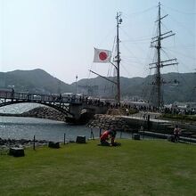長崎水辺の森公園の岸壁に集います。街なかで実際の帆船が見られるということで、貴重な機会だと思います。