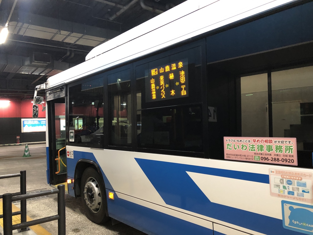 熊本市内や近隣都市を繋ぐ路線バスです。現金支払いの他、ICカードが利用できて便利でした。熊本市内の桜町バスターミナルから山鹿バスターミナルまでの移動で利用したところ、熊本城や修復中の城壁、人々の生活が感じられる住宅街や通勤で混む幹線道路などの風景が車窓から見られ、ローカルな雰囲気が心地よかったです。