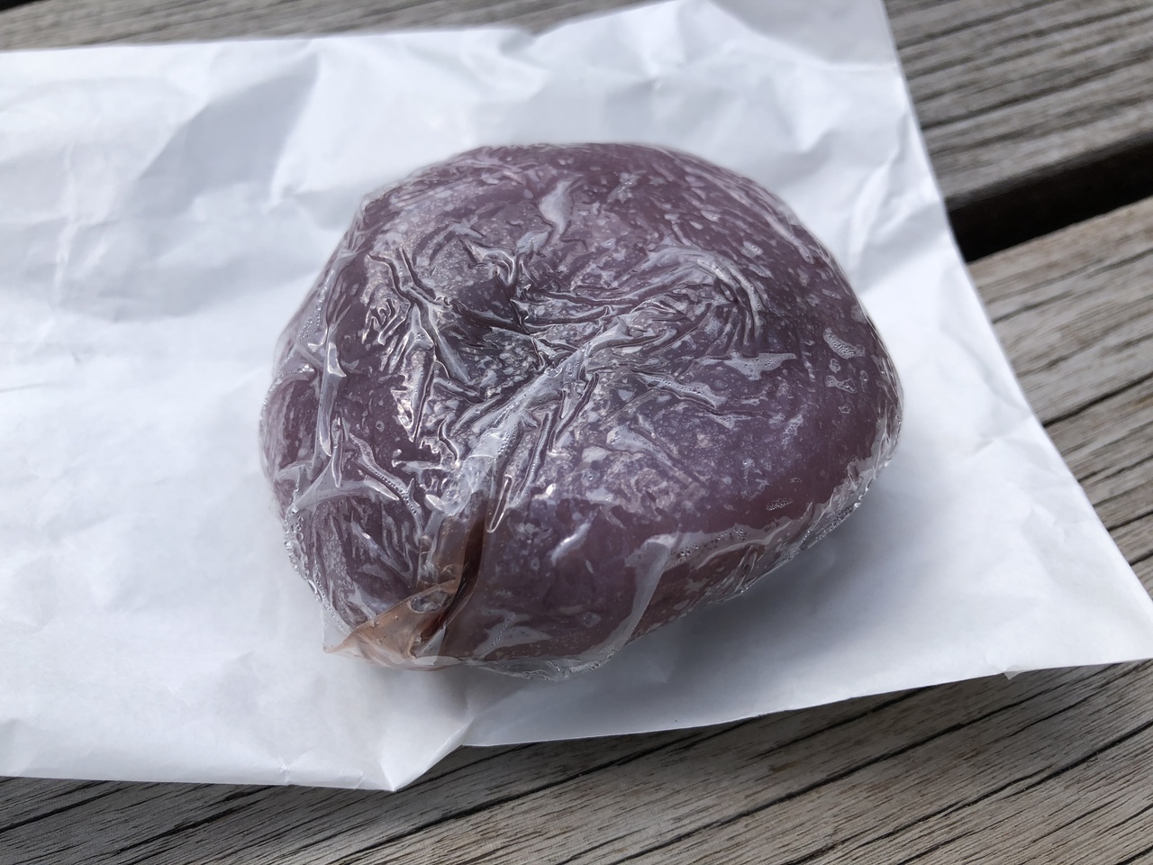 お団子というよりかは、大きさで言えばお饅頭に近いのですが、蒸かしたサツマイモを丸ごとあんこと共に小麦粉の生地で包み、それを蒸しあげたものです。お芋の種類で紫色や黄色、白色など種類があります。あんこの甘さが控えめで、サツマイモの甘さが引き立つ逸品でした。