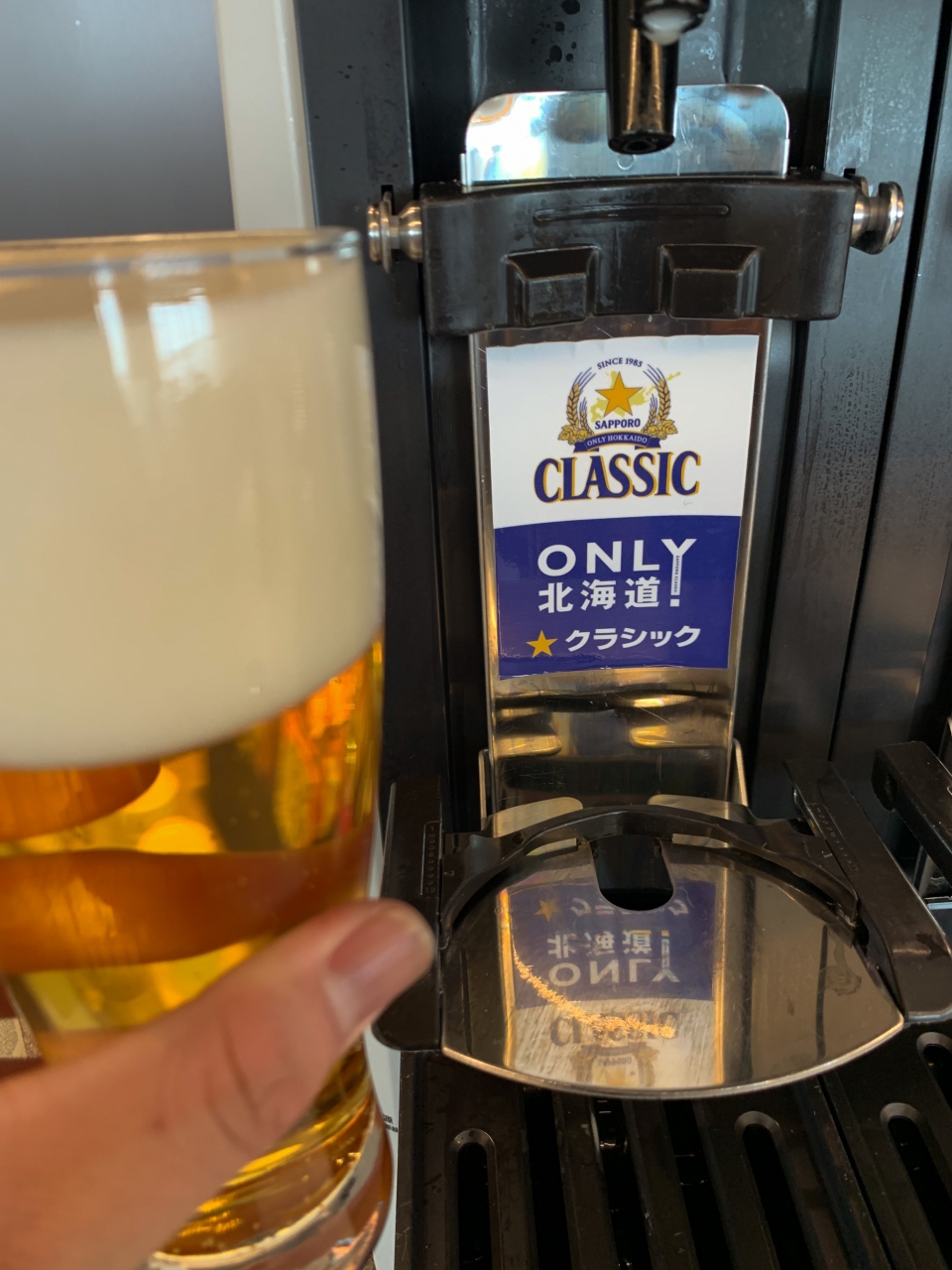 ドリンクやサービス等は他のANAラウンジと同じですが、ドリンクバーのメニューに北海道限定のビール「サッポロクラシック」が用意されているのが嬉しい所。