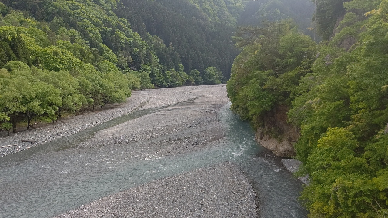 天竜川は、諏訪湖に源を発し遠州灘に注ぐ河川。ライン下りができることで有名です。国内屈指の急流河川に数えられ、しばしば洪水をおこしたため「暴れ天竜」の異名をもちます。自分が見たときは穏やかで、とても暴れるようには見えませんでした。緑がかった川の色はとてもきれいです。