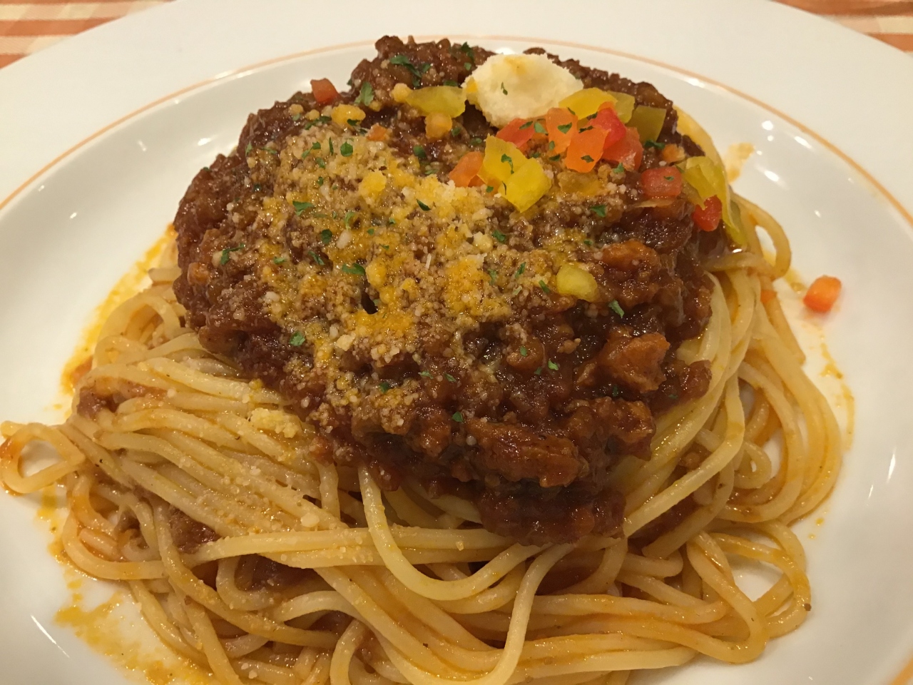 ここのお店はなんといってもパスタが看板メニューなので、パスタメニューの中から、今回は極旨ミートソース(1078円)というのを選択しました。