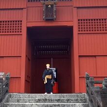 有料区域に入る前の門です。入場券の販売所もあります。毎朝,朝一番の8時55分~9時15分正殿への開門の儀式が行われます。時間は有料区域の開園時間によって変わるらしいので,訪問前にホームページで確認してください。