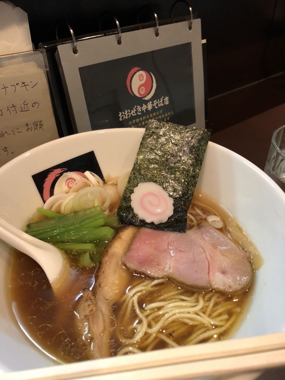 醤油味でとても優しい味わいで印象的でした。麺は中細麺で、程良い硬さでした。今巷で流行っている油ギトギトや、塩味が強いラーメンとは違って、とても健康的なラーメンと思いました。またぜひアメリカが痛いです。女性の1人利用も見られました。