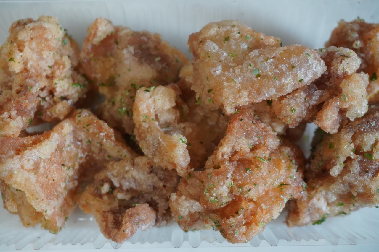 つつむは、友愛市場からの歴史を持つ餃子やぶたまんの老舗です。今回は、鶏のから揚げをテイクアウト。スパイスがいい感じで効いているし、からりと揚げた鶏肉の旨味もちゃんとあってさすがのおいしさ。我が家のご飯のおともになりました。