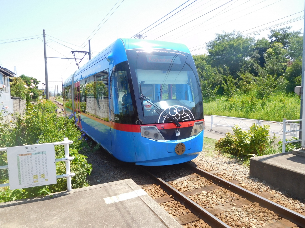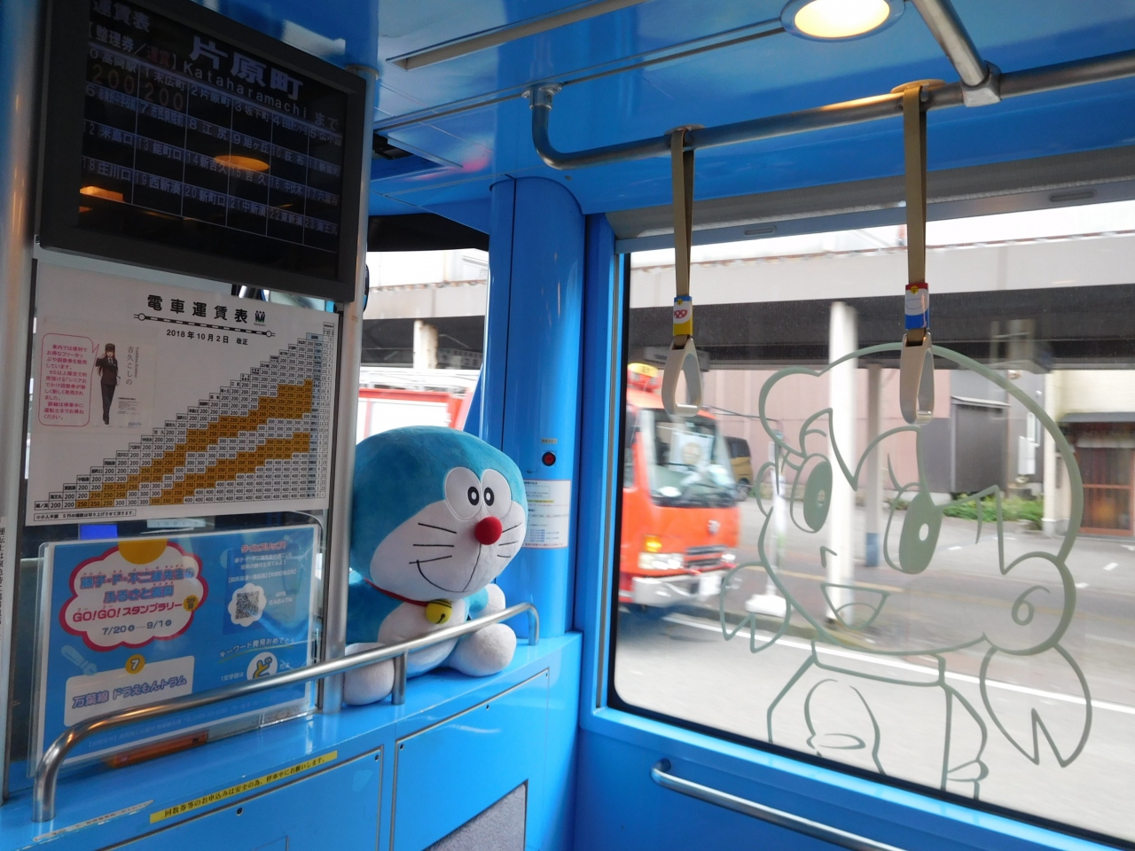 海王丸パークへの移動で利用。特に狙ったわけではありませんが、ドラえもんトラムでした。(ネット上で運行情報が手に入りませんでした)